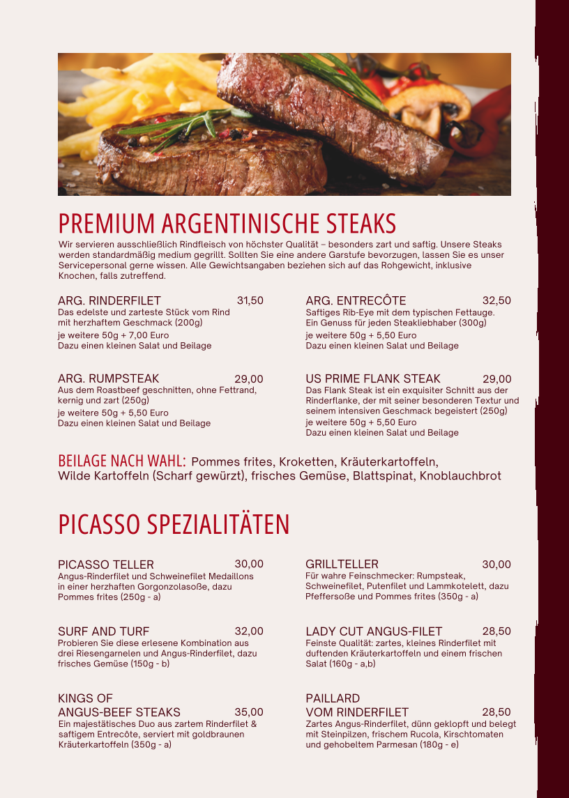 Welcome to Italian Steak-Restaurant Picasso, a culinary gem nestled in the heart of Bad Wimpfen, Germany. This vibrant eatery specializes in elevating classic Italian flavors with a focus on premium steaks. Guests rave about their exceptional dining experience, with reviews highlighting the quality and authenticity of the dishes.